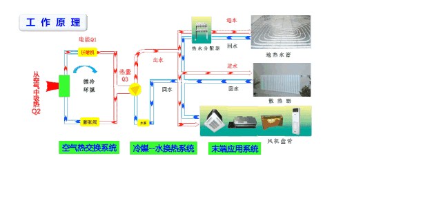 空氣源熱泵從原理上說, 生活中常見的冰箱也是一種熱泵, 夏天冰箱里面是4-7度, 外面是30-35度, 當(dāng)我們把一盤熱菜放進冰箱時,菜里面的熱量散發(fā)到冰箱里面的冷空氣中,冰箱里面的機器開始工作,把里面冷空氣里面的熱量搬到外面的空氣里面來,這樣不斷的工作, 冰箱里面才能維持一個恒定的溫度,當(dāng)我們用手摸冰箱的側(cè)面或后面時,會有點微微的熱, 這就是冰箱在進行熱量的搬運!